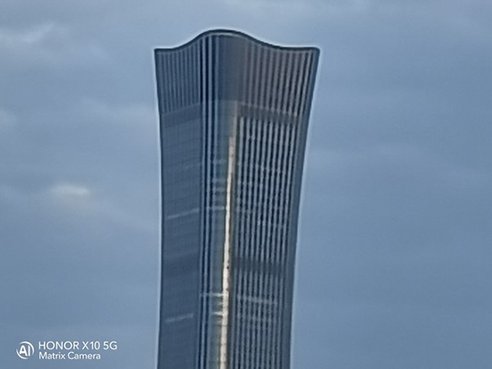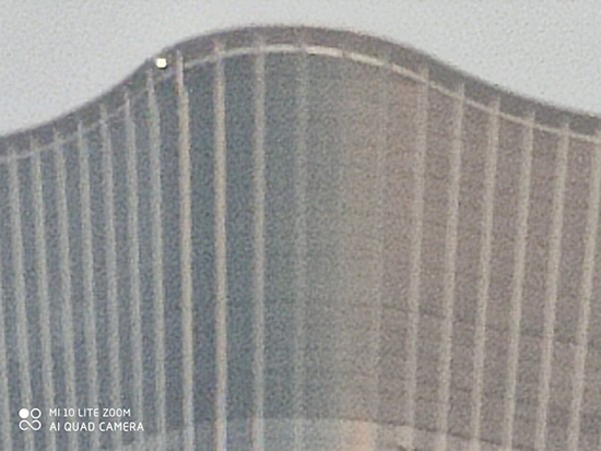 值得注意的是,我們將建筑物的表面部分進行放大,可以看出榮耀X10有著更為清晰的顯示效果,而小米10青春版這部分噪點較多,畫面出現(xiàn)涂抹、顯示不清等問題。