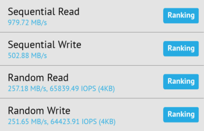 拿到真機(jī)后,我第一時(shí)間測(cè)試了紅米K30至尊版的閃存性能,結(jié)果是令人驚訝的。連續(xù)讀取速度979 MB/s,屬于UFS2.1閃存的范圍。
