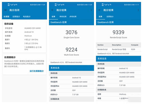 在處理器性能測(cè)試Geekbench測(cè)試軟件中,榮耀30S單核獲得3076分,多核獲9224分,CPU單核跑分相比麒麟810提升8.5%,多核跑分提升21.3%。在運(yùn)算跑分中獲得9339分,整體性能表現(xiàn)較為不錯(cuò),甚至要追平旗艦芯高通驍龍855。