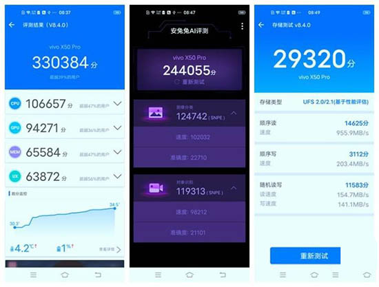 上圖:vivo X50 Pro 安兔兔跑分成績(jī)