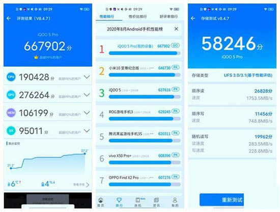 上圖:iQOO 5 Pro安兔兔跑分成績(jī)