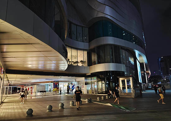 拍攝夜景一直對(duì)手機(jī)來(lái)說(shuō)是一個(gè)巨大的挑戰(zhàn),因?yàn)槿豕鈼l件的限制,感光性能不強(qiáng)的手機(jī)往往不能夠很好地還原夜景。iQOO 5為了應(yīng)對(duì)這種情況,它的主攝搭載了1/1.3英寸的超大底傳感器,四合一像素尺寸更是達(dá)到了2.4μm。在拍攝的時(shí)候能夠感知到盡可能多的光線,有效提升了iQOO 5的綜合感光性能,讓它在暗光處也能清晰還原眼中夜景。下圖是用iQOO 5拍攝的一組夜景樣張,在圖中可以看到大廈外頭的光線并不充足,但在iQOO 5超感光主攝的加持下,不僅大廈上窗戶(hù)得到了還原,而且在放大這張圖片之后,更是可以看清行人的臉部細(xì)節(jié)。