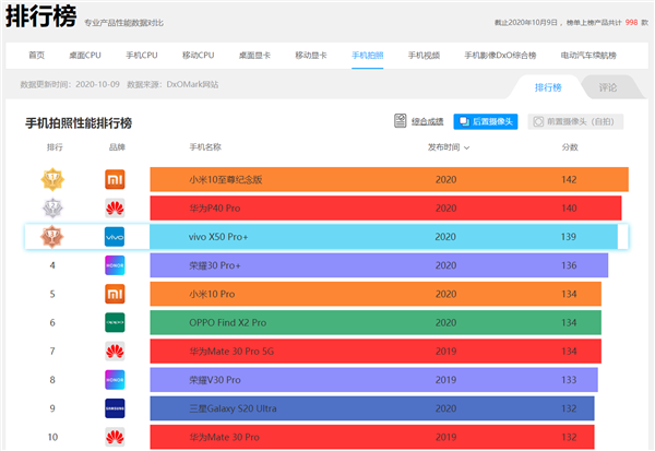 近日,DxOMark官方公布了vivo X50 Pro+的評(píng)測(cè)成績(jī),綜合評(píng)分高達(dá)127,僅次于小米10至尊紀(jì)念版130分、華為P40 Pro 128分,位列榜單第三名。其中,拍照部分成績(jī)?yōu)?39,同樣僅次于上述兩款機(jī)型,視頻部分成績(jī)?yōu)?04,不如兩位強(qiáng)力對(duì)手的同時(shí),和榮耀30 Pro+、OPPO Find X2 Pro、小米10 Pro處于同一水平,也可以算排第三。
