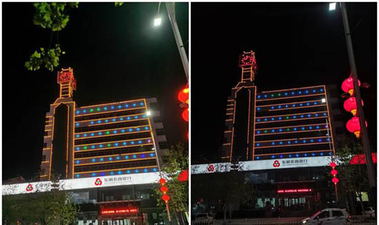 接下來就是夜景部分,榮耀30 Pro和小米10 Pro都有夜景模式,這也是專門針對有夜間拍照需求的人而設(shè)定的,整體對比下來小米得益于1億大像素,在夜間的解析力要稍強一些,而且對于光暈的壓制稍好,不過小米10 Pro在一些照片上有過度壓制曝光的表現(xiàn),大家可以仔細看第二組照片,小米Pro為了照顧畫面的純凈度,左上角的綠葉已經(jīng)完全看不到了,而榮耀30 Pro則很好的把樹葉進行了保留。