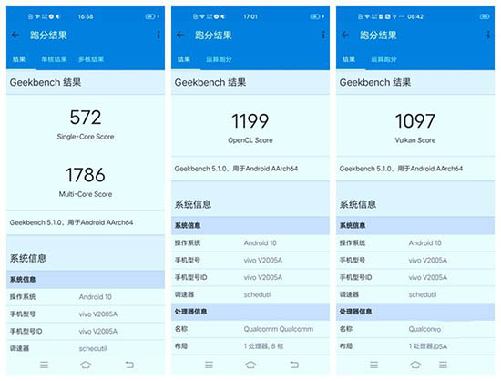 實(shí)際測(cè)試結(jié)果來看,realme真我Q2天璣800U的性能表現(xiàn)還是比較出色的,在安兔兔跑分中已經(jīng)能夠達(dá)到33萬多分,其中CPU部分為105373分,GPU部分得分為88995,而在GeekBench 5中單核有600分,多核有1791分,從對(duì)比結(jié)果來看整體表現(xiàn)幾乎與vivo X50 Pro搭載驍龍765G處理器的手機(jī)相當(dāng)。