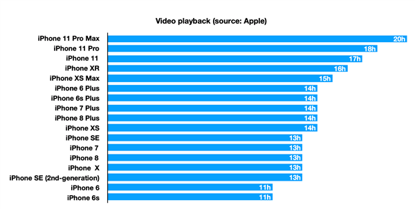 iPhone 12 Pro Max:20小時,與iPhone 11 Pro Max一致。