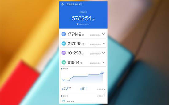 實際上看它的三大件,也幾乎都是行業(yè)頂端配置:高通驍龍865+LPDDR4X RAM+UFS 3.1,最高12GB+256GB,如果跑個分,大概是這樣: