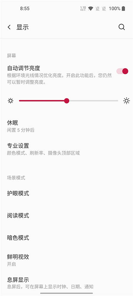 舉個例子,當從一個較明亮的環(huán)境來到另一個更暗的環(huán)境時,突然的光線變化往往會加劇手機屏幕的刺眼感,而8192級亮度調(diào)節(jié)則可以讓屏幕亮度進行平滑過度,帶來了更柔和的視覺感受。有效規(guī)避忽明忽暗的狀況,這是非常細節(jié)的改進。