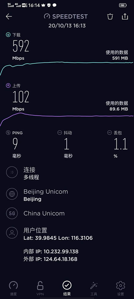 通過SpeedTest實測,vivo Y73s上傳速度能夠達(dá)到592 Mbps,下載速度能夠達(dá)到 102 Mbps,遠(yuǎn)超4G的速度讓用戶不論是玩游戲還是看視頻都能更流暢不受網(wǎng)絡(luò)卡頓的影響。