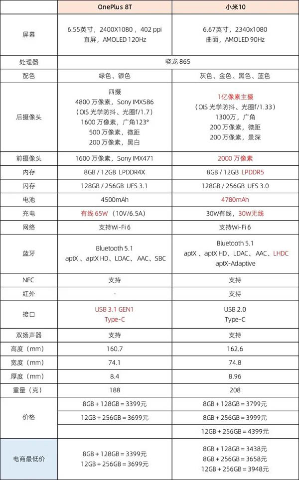 充電方面是你要抉擇的環(huán)節(jié),一加8T支持65W的有線充電,速度比小米10的30W快很多,但小米10支持30W的無線充電,一加8T不支持。如果你本身沒用過無線充電的東西,我猜你會選擇65W;如果你習慣了無線充電,你可能會猶豫要不要買小米10。