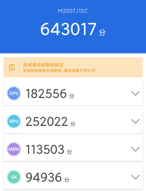 小米10至尊紀(jì)念版采用了驍龍865移動(dòng)平臺,擁有16GB LPDDR5內(nèi)存以及512GB UFS3.1的存儲空間,對于這樣的硬件配置也是目前頂級旗艦的配置,經(jīng)過測試軟件測試,小米10至尊紀(jì)念版的最終成績達(dá)到了643017分。