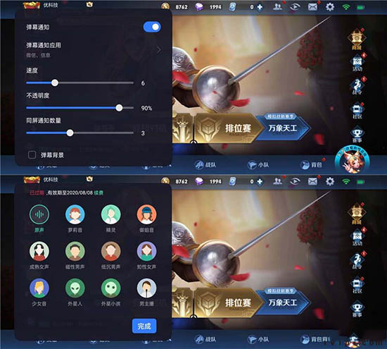 另外還具備彈幕通知功能,讓微信、QQ、短信等消息在游戲期間也不再錯(cuò)過(guò),避免了切換出去看消息回來(lái)涼涼的場(chǎng)面,同時(shí)還可以 設(shè)定彈幕速度以及透明度和同屏通知數(shù)量。同時(shí)還支持游戲變聲功能,讓游戲過(guò)程更加的具有趣味。