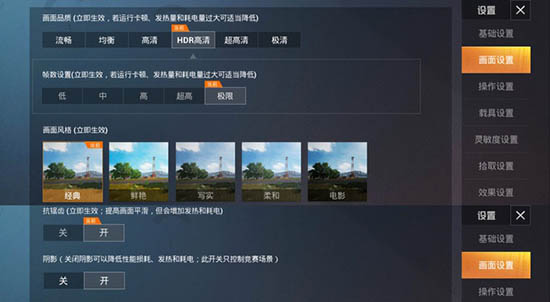 性能部分除了測(cè)試軟件的理論性能跑分以外,游戲是比較能代表綜合性復(fù)雜負(fù)載體驗(yàn)的,老規(guī)矩用《和平精英》進(jìn)行游戲測(cè)試,畫(huà)質(zhì)選擇「HDR高清+極限幀率(60FPS)+抗鋸齒開(kāi)+陰影開(kāi)」。