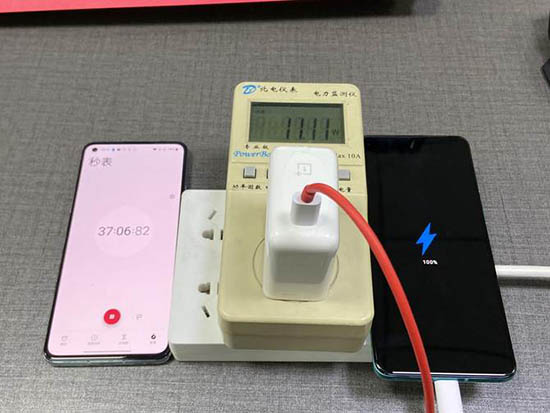 在37分06秒時(shí),電量達(dá)到了100%,比官方宣傳的39分鐘還要更快一點(diǎn)。