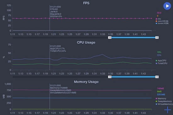 實(shí)際玩一把《和平精英》,將游戲畫質(zhì)設(shè)置為HDR高清和極限幀率,通過PerfDog記錄的幀率顯示,三星Galaxy Note20 Ultra 5G幀率維持在60幀左右。