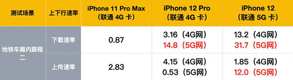 更大的差異是由5G帶來(lái)的。只要測(cè)試場(chǎng)景能搜到5G信號(hào),那么,對(duì)比iPhone11ProMax,iPhone 12都能在速率上比它快6-7倍。