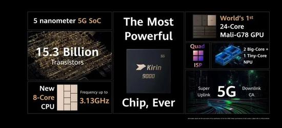 在當(dāng)前的語(yǔ)境中,這次Mate40一定會(huì)選擇的麒麟9000被形容成為了一個(gè)“悲壯的英雄角色”--它很強(qiáng),但可能是最后一代了。5nm制程的麒麟90005G芯片集成多達(dá)53億晶體管,是目前晶體管數(shù)最多和功能最完整的5G手機(jī)芯片。
