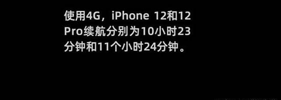 如果對比iPhone 11 在4g環(huán)境下,你會發(fā)現(xiàn)iPhone 12比iPhone 11續(xù)航就多了半個小時,對比iPhone 11 Pro與 iPhone 12 Pro,同樣續(xù)航多了半個小時。