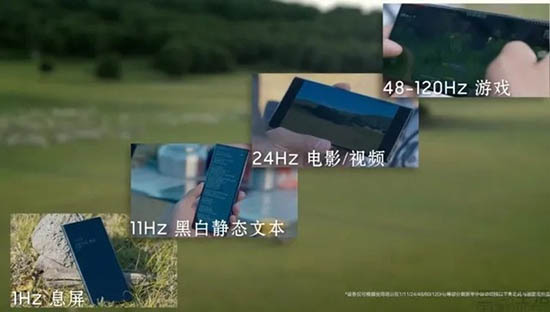為解決120Hz高刷新率所帶來的功耗,三星首創(chuàng)實時可變刷新率技術(shù),它能夠在息屏?xí)r僅以1Hz的超低刷新率運行,在閱讀黑白靜態(tài)文字時保持11Hz刷新率,在觀看電影/視頻時屏幕可以同步為24Hz,而在玩高畫質(zhì)游戲時,屏幕刷新率最高可支持到120Hz。