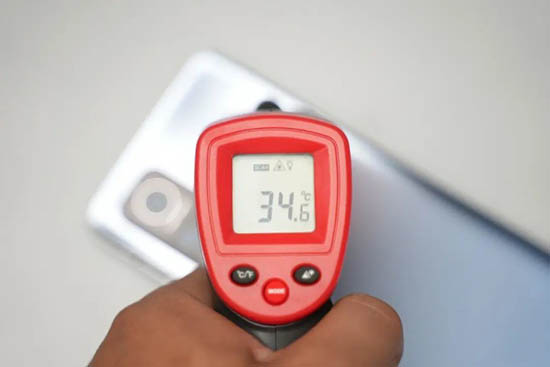 在測(cè)試中,我們也使用溫槍對(duì)手機(jī)進(jìn)行測(cè)溫。此時(shí)室溫為21.6 ℃,手機(jī)正面最高溫度為 34℃,熱量集中在 SoC 附近;背面為 34.6℃,出現(xiàn)在攝像頭附近??磥?lái)Redmi K30S 至尊紀(jì)念版的懸浮液冷散熱技術(shù)也是可圈可點(diǎn)。