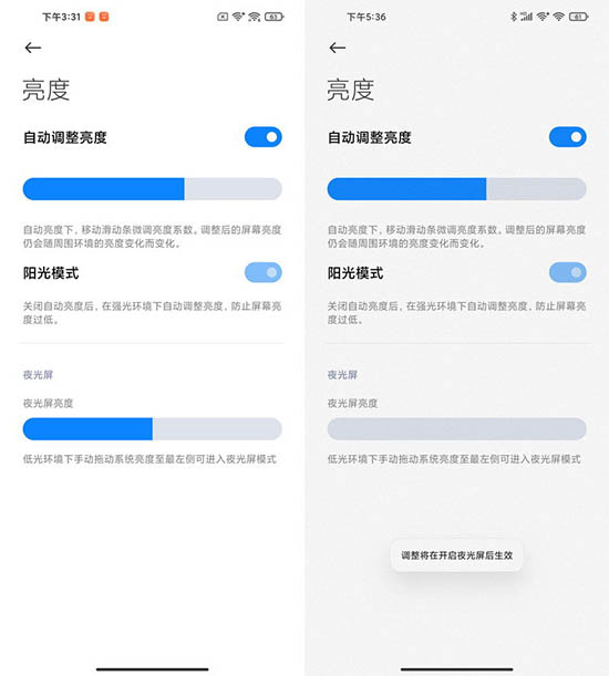 除此之外,Redmi K30S至尊紀(jì)念版不僅繼承了此前小米與Redmi高端機(jī)型招牌的4096級細(xì)膩亮度調(diào)節(jié)功能,還新增了“超暗夜光屏”模式。在該模式下,Redmi K30S至尊紀(jì)念版的屏幕最低甚至能以僅有1nit的亮度進(jìn)行顯示,也將大幅減輕無環(huán)境光線下看手機(jī)時,屏幕亮度太高對于人眼所造成的刺激。同時LCD屏天生的調(diào)光方式差異,也決定了Redmi K30S至尊紀(jì)念版的這塊屏幕在低亮度時更利于保護(hù)視力。