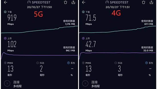 網(wǎng)速方面,我們也進(jìn)行了測(cè)試,另外考慮到各地運(yùn)營(yíng)商的建設(shè)進(jìn)度有所區(qū)別,所以最終測(cè)得的5G網(wǎng)絡(luò)速度與大家到手實(shí)測(cè)的結(jié)果可能會(huì)有所出入。