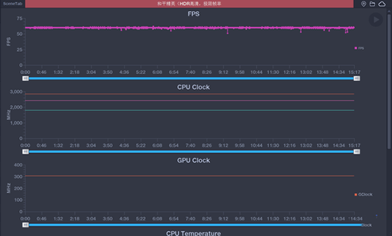 我選擇了目前市面上的比較熱門(mén)的兩款游戲《和平精英》和《原神》進(jìn)行了測(cè)試?!逗推骄ⅰ穼?huà)質(zhì)設(shè)置為HDR高清,幀數(shù)為極限,從測(cè)試結(jié)果來(lái)看,全程基本可以穩(wěn)定在60fps,幀率波動(dòng)很小,機(jī)身發(fā)熱控制的也不錯(cuò)。