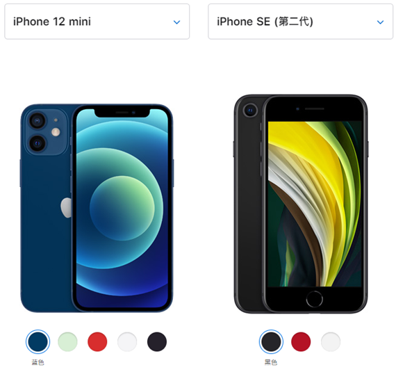 iPhone 12 mini的顯示屏為5.4英寸,iPhone SE(第二代)為4.7英寸。