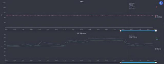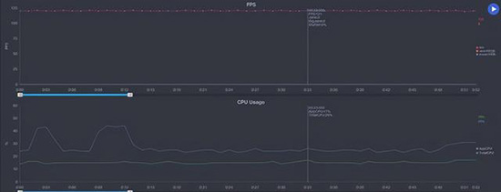 在射擊類高畫質(zhì)手游《王牌戰(zhàn)士》的測試中,我們將畫面設(shè)置為最高、幀率設(shè)置為最高。在此設(shè)置下通過PerfDog記錄的游戲畫面幀率數(shù)據(jù)顯示,一加8T運行《王牌戰(zhàn)士》時的幀率達到了120幀的水平,通過PerfDog記錄幀率曲線我們可以看出即使是在120幀的高幀率狀態(tài)下,幀率曲線也十分平穩(wěn)上下波動在1幀的左右的水平,由此可見在一加8T具備長時間運行高幀率高畫質(zhì)游戲的能力。一加8T能夠擁有這樣出色的游戲表現(xiàn),正是得益于一加8T強勁的性能與散熱配置,以及高刷新率的AMOLED屏幕。