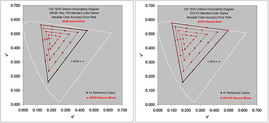 左:sRGB / Rec.709標準色域 右:DCI-P3標準色域