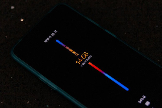 比如更符合單手操作的設(shè)置菜單欄,全局可調(diào)黑色的深色模式等,還有創(chuàng)意的AOD息屏顯示。在個性化-息屏顯示-熄屏?xí)r鐘內(nèi)的“時光”AOD息屏?xí)r鐘,會記錄當(dāng)天的解鎖次數(shù)和全天喚醒時段(表現(xiàn)為彩帶上的黑段)。