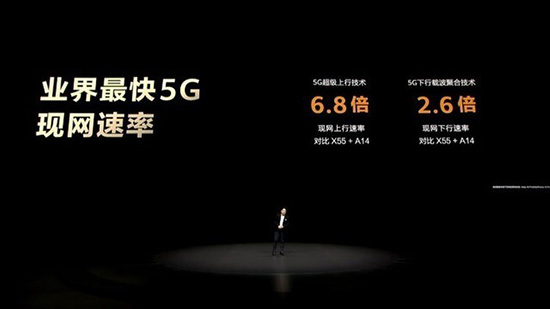 在5G網絡方面,麒麟9000也給出了一份令人滿意的成績,再次刷新了5G速度。通過支持5G SA 雙載波聚合,Sub-6G下行理論峰值速率達4.6Gbps,上行理論峰值速率達2.5Gbps,在現網測試中,對比A14+X55下行速率峰值提升了2.6倍,上行速率峰值提升了6.8倍,遠遠超過競品。