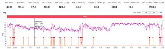 同樣的游戲場(chǎng)景,使用搭載了高通驍龍865+的三星Note 20 Ultra再試一遍,平均幀率只有49,并且波動(dòng)更大。