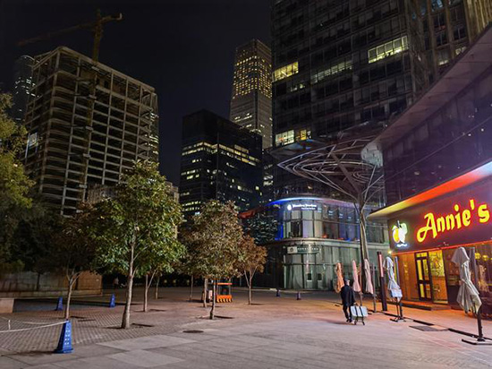來到華為擅長(zhǎng)的夜景部分,在保留細(xì)節(jié)的同時(shí)壓制高光已經(jīng)成了Mate40 Pro的基本功。在絕大多數(shù)的情況下,都能做到在還原現(xiàn)場(chǎng)的視覺效果的基礎(chǔ)上,對(duì)照片進(jìn)行適度的提亮,色彩表現(xiàn)也非常舒適。接下來我們也給華為Mate40 Pro找了個(gè)對(duì)手,與發(fā)布不久的iPhone 12 一較高下。