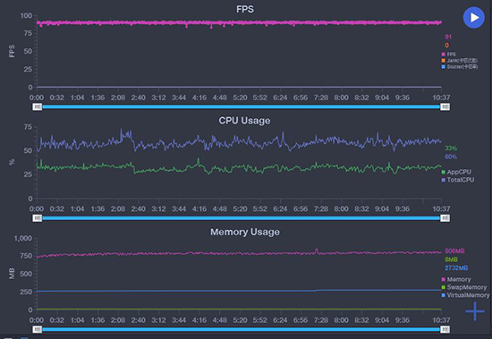 這里我們也進(jìn)行了實(shí)際的游戲測試,諸如《和平精英》這類最流行的游戲,華為Mate40 Pro可以輕松在高幀率模式下提供最流暢的體驗(yàn),幀數(shù)曲線上幾乎就是一條直線,沒有任何的幀數(shù)波動,運(yùn)行非常穩(wěn)定。