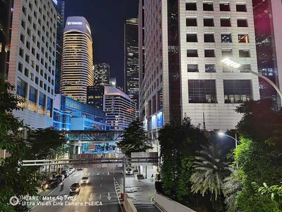 可以說,在夜景方面得益于華為的超級夜景算法以及1/1.28英寸超大底傳感器,讓Mate40 Pro的夜景拍攝非常出色,光暗控制也做到很好的平衡。Mate40 Pro夜景能有效控制噪點(diǎn),讓夜景的畫面非常通透。同時(shí)夜景模式下支持廣角拍攝和長焦拍攝。