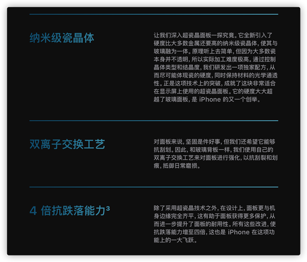今年的iPhone 12系列由于采用了平坦金屬邊框和純平面板,屏幕完全被金屬中框包裹,在跌落時(shí)受力不容易傳遞給屏幕導(dǎo)致碎屏,而且蘋果還引入了超磁晶技術(shù),讓屏幕的硬度有了明顯的提升。