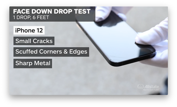 結(jié)果顯示,鋁金屬中框和玻璃后蓋的iPhone 12測(cè)試結(jié)果更勝一籌,僅在屏幕朝下的測(cè)試中出現(xiàn)屏幕裂痕,其他兩個(gè)測(cè)試都只讓鋁制中框產(chǎn)生一些磕碰痕跡。這個(gè)結(jié)果比去年他們測(cè)試的iPhone 11要好上不少,Allstate Protection Plans甚至還表示iPhone 12是他們測(cè)試過(guò)的手機(jī)中,抗跌落表現(xiàn)最好的機(jī)型。