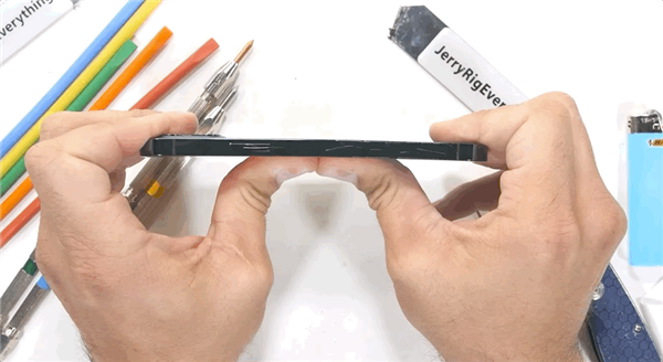 另外,可能有人擔(dān)心今年iPhone 12變薄會(huì)不會(huì)導(dǎo)致機(jī)身容易被掰彎,Zack Nelson也著重測(cè)試了這一點(diǎn),從視頻中可以看出他幾乎使上了吃奶的力氣,iPhone 12 Pro還是紋絲不動(dòng)。
