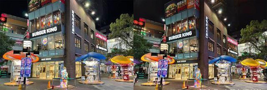 先看這組對(duì)比樣張,可以看出vivo X50 Pro+的主攝像頭的角度其實(shí)相比iPhone 12會(huì)更廣一些,從顏色來看,iPhone 12整體是還原出現(xiàn)場(chǎng)的那種暖光的場(chǎng)景,而X50 Pro+這邊則是提升整體銳度,更討好眼球。虛化效果還是vivo X50 Pro+更勝一籌。