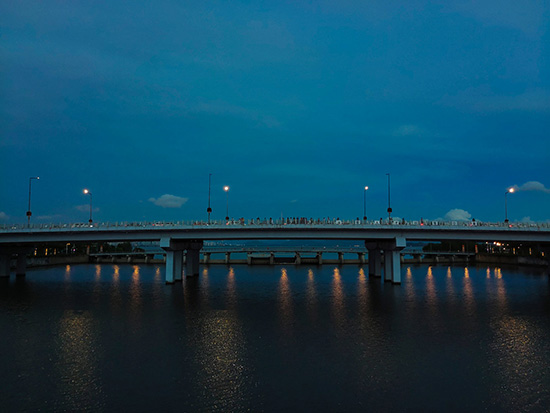 除了傳統(tǒng)的夜景模式外,vivo X50 Pro甚至還準備了包括黑金、藍冰、青橙與賽博朋克在內(nèi)的四個夜景模式風(fēng)格濾鏡。對于那些色彩過于暗淡或雜亂的夜景場景,合理使用這幾個濾鏡或許能夠讓相對平實的場景的達到超乎預(yù)想的獨特觀感,有時候甚至能讓通常色彩下拍攝并不好看的場景變得非常漂亮。