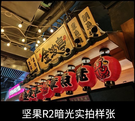弱光下的手機(jī)拍照能力也是大家所關(guān)注的重點(diǎn),在該環(huán)節(jié)的測試中我們選擇了一個(gè)光源復(fù)雜的環(huán)境進(jìn)行測試。通過樣張對比,可以看到堅(jiān)果 R2和iPhone 12的表現(xiàn)都很不錯(cuò),這兩部手機(jī)的成像畫面均做到畫質(zhì)清晰、細(xì)節(jié)豐富、沒有出現(xiàn)明顯的眩光問題,而小米10 Pro則出現(xiàn)了明顯的眩光問題。