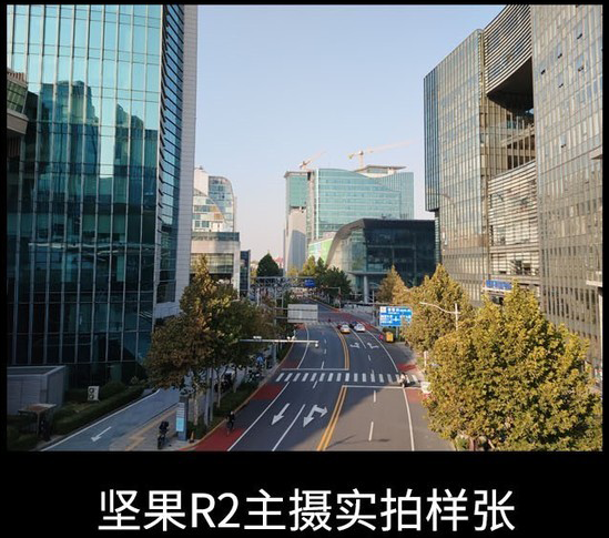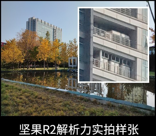 畫面解析力也是考量手機(jī)拍照實(shí)力的重要指標(biāo),通過下面的樣張對比可以明顯看出采用了一億像素主攝的堅(jiān)果 R2和小米10 Pro在該環(huán)節(jié)具有明顯的優(yōu)勢,即使是畫面中遠(yuǎn)處建筑物上的一個(gè)細(xì)節(jié)在一億像素樣張上也能夠得到清晰的呈現(xiàn)。
