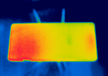 從紅外溫度來看,其他幾款手機在游戲時發(fā)熱較大,幾乎一半的位置都是深紅(意味著溫度更高),相比之下堅果R2只有四分之一的區(qū)域發(fā)熱較多,但溫度要比其他幾款手機要低,并且避開了手握的主要區(qū)域,感覺上會更好。