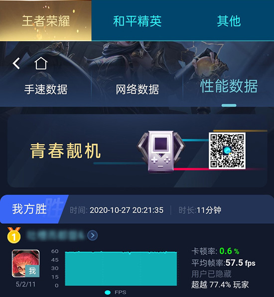 在《王者榮耀》的測試中,除了分辨率暫時(shí)沒辦法開到超高外,其余特效均為全開。游戲幀率變化如上圖,游戲平均幀率達(dá)到57.5幀,波動(dòng)比較小,即使是復(fù)雜的多人團(tuán)戰(zhàn)場景也能保持很好的流暢度。OPPO K7x應(yīng)對《王者榮耀》這類游戲無壓力,喜歡玩這款游戲的朋友不用擔(dān)心。