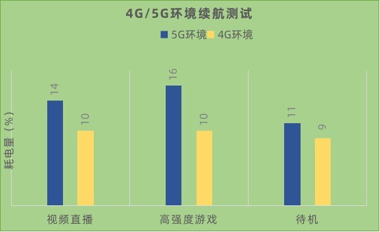 我們可以看到,在高強(qiáng)度使用網(wǎng)絡(luò)時(shí)比如觀看直播、玩游戲時(shí),5G網(wǎng)絡(luò)下會(huì)有較高的功耗,5G/4G功耗比大概為150%左右;但是在待機(jī)時(shí),4G和5G沒(méi)有明顯的差別,甚至拉長(zhǎng)時(shí)間線也沒(méi)有拉開功耗的差距。