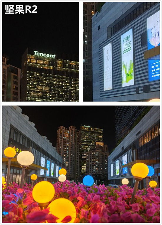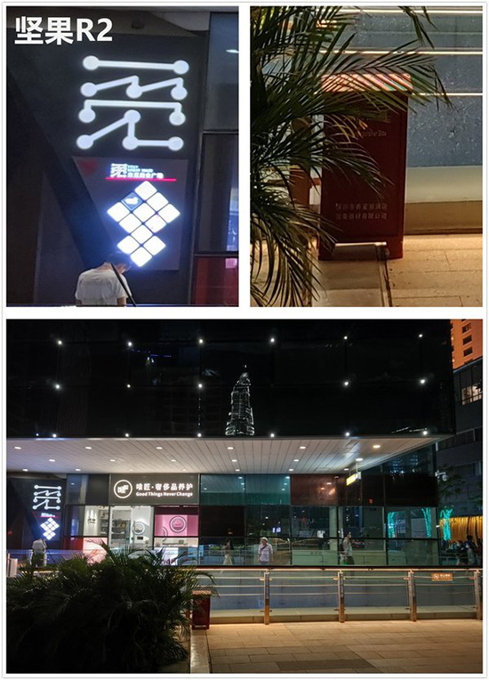 就這次的夜景對比來說,堅果R2在夜景拍攝上可以說是小勝一加8?Pro,在各種場景下無論是曝光控制還是色彩還原都發(fā)揮得更穩(wěn)定一些,高光壓制合理,細節(jié)清晰,平坦區(qū)(夜空)噪聲平滑,而在景物還原上基本于眼睛所看見的保持一致。堅果手機團隊對于這顆鏡頭的調(diào)教比較到位,發(fā)揮出了這顆1.08像素鏡頭應有的實力。