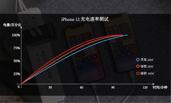 通過實(shí)際測試可以看出,三款充電器表現(xiàn)相近,iPhone 12充滿50%需要25分鐘左右,半小時(shí)能充60%左右,完全充滿需要100分鐘左右。綠聯(lián)的倆款充電器充電速度略快,但優(yōu)勢(shì)并不形成碾壓。