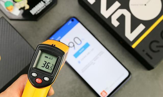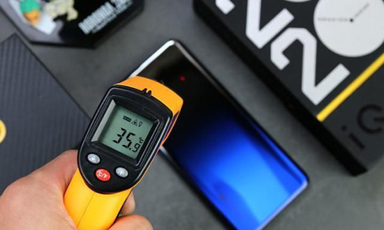 iQOO Neo3采用的非金屬的邊框,導(dǎo)熱性肯定不如金屬邊框來的快,不過非金屬邊框也是有優(yōu)勢的,輕巧和整體性更好。所以我的這部夜幕黑,外觀上做到了和后蓋一樣的漸變色效果。拷機15分鐘,我們90%的時候測試正反面最大表面溫度,僅僅36攝氏度左右,我認為這散熱駕馭驍龍865完全沒有任何問題;