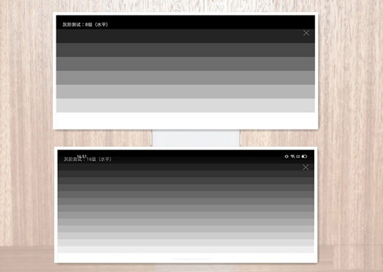 最后是灰階測試,8級,16級,32級灰階清晰細膩,明暗過渡明顯,由左至右依次遞減,64級灰階變化也依稀可見,說明這塊屏幕顯示細膩度比較優(yōu)秀,超越大多千元5G機型。